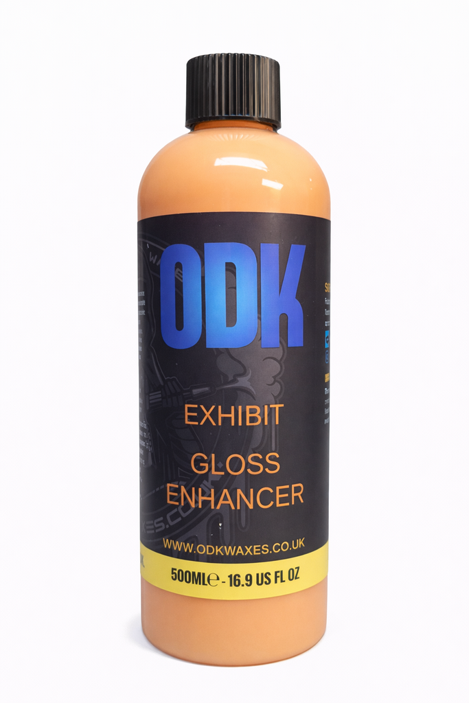 Exhibit is an all out gloss enhancer, easy to use and remove, leaving a streak free, very high gloss finish. Exhibit has a light polymer to give a few weeks protection, a great way to enhance gloss and top up your existing wax or sealant coating. With a stunning Toffee Apple fragrance this is a must have. Exhibit is so easy to use and is perfect for finishing your vehicle at home or at a show.